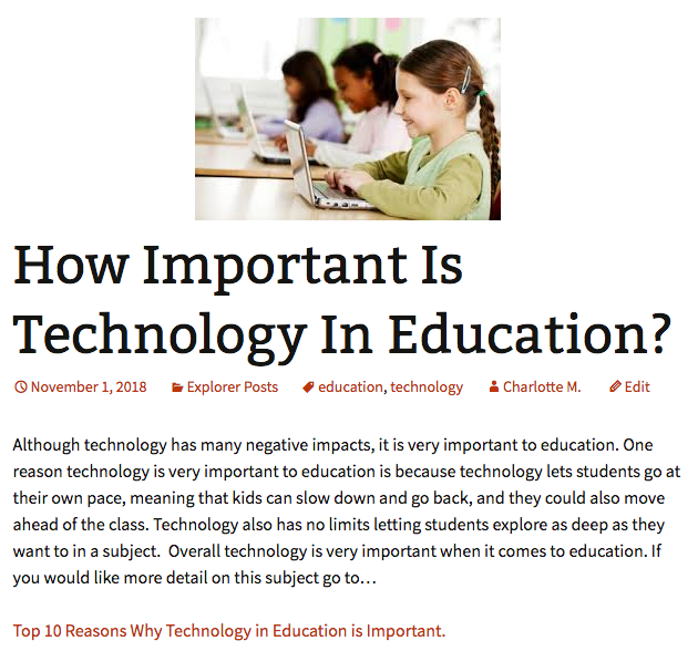 The Class Explorer is responsible for composing and submitting a brief post to our Learning Blog that features content which extends our learning about Digital Citizenship and the lives we lead online beyond what we’ve covered in class.
