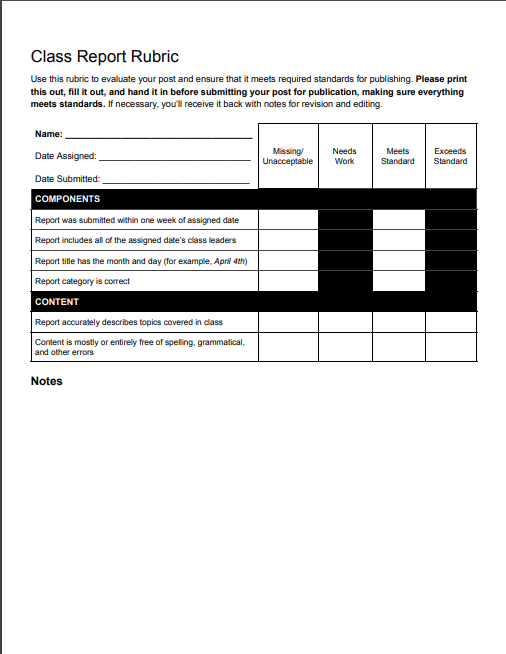 Please use this rubric to make sure you meet all standards for publication of your class report.